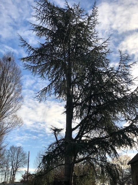 Ah ce qu’il est beau ce cèdre ! Il se voit à plusieurs kilomètres à la ronde. C’est un vrai repère pour la maison. Il pourrait continuer à se développer en majesté pendant plusieurs siècles. Mais ce ne sera pas le cas. Comme chaque année ou presque, l’agent d’EDF est venu me signifier les travaux qu’il avait l’intention de faire chez moi. Et pour cause, j’ai une ligne électrique qui traverse le terrain. Les trois poteaux en béton n’ont évidemment aucun charme mais ils sont indispensables pour électrifier la maison. Il faut dégager les branches qui risqueraient de toucher les fils. Et les élagueurs d’EDF n’y vont pas de main morte. En général, Ils taillent les arbres à la va-vite ! Et ils partent en laissant derrière eux un amas de déchets verts. Toujours très agréable…